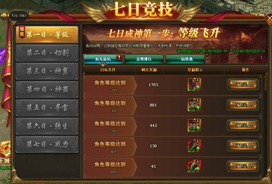活动时间:开服第1天出现,挑战完所有关卡后消失