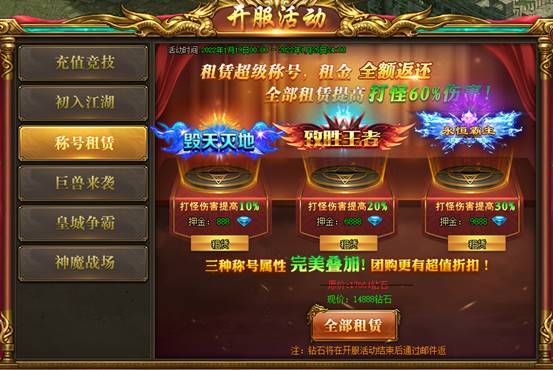 活动介绍:第3天开启王城争霸,首次占领送钻石