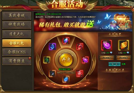 活动时间:合服第1天,持续2天