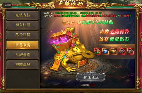 活动介绍:每日准时刷新boss,必掉钻石和神装