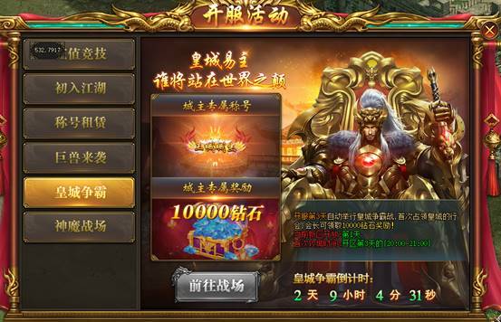 活动介绍:第3天开启王城争霸,首次占领送钻石